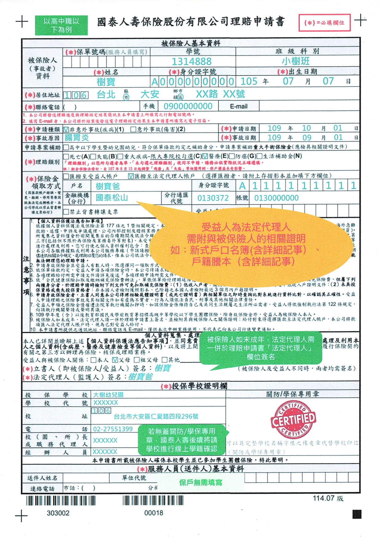 113學年度新規定,只要被保險人未滿18歲皆須附戶口名簿影本。(必須為詳細記事的戶口名簿)
