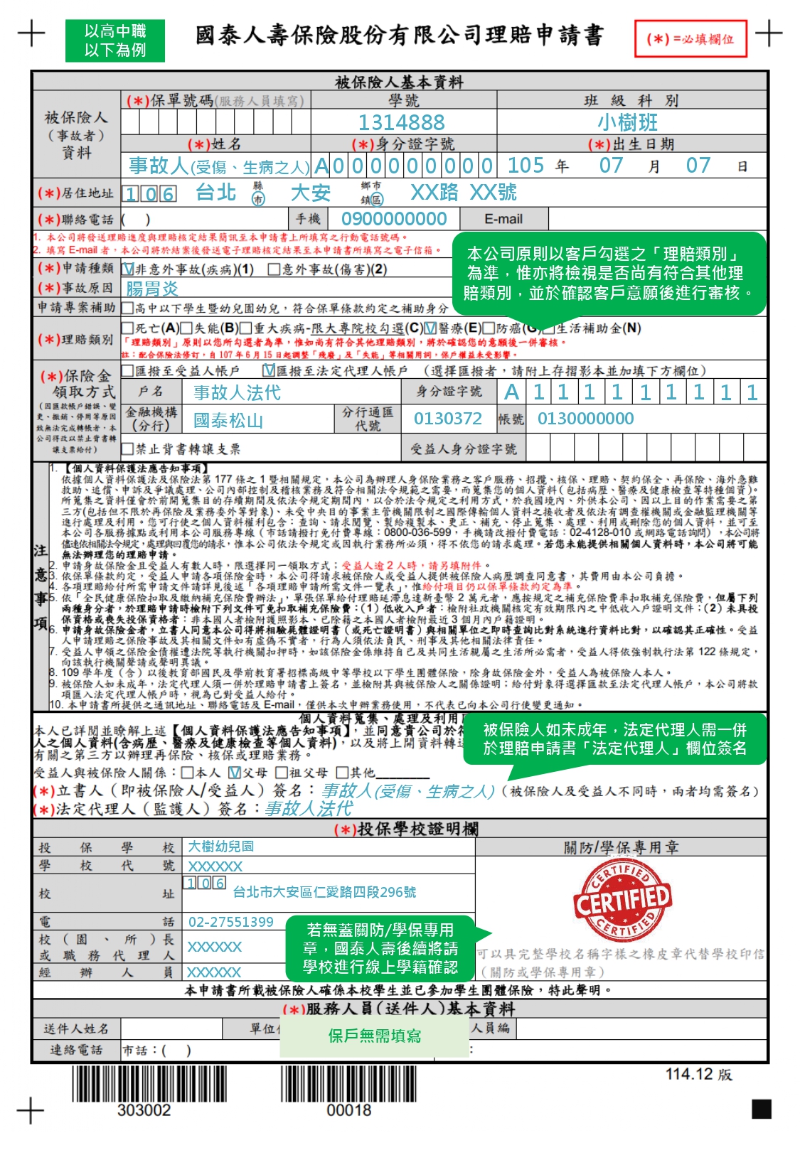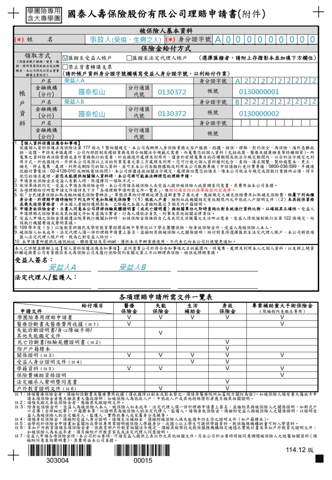 3.申請理賠一率以新版(114.12版)申請書申請,之前下載或領取的舊版申請書無法使用,請至底下附件區下載或到人事室索取。